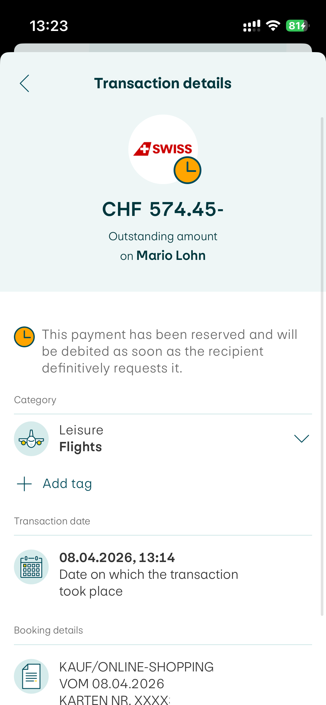 Ab dem Zeitpunkt war ich mir fast sicher, dass die Situation am nächsten Tag vom Buchungs- respektive Inkassosystem automatisch bereinigt werden würde. Und tatsächlich: Am nächsten Tag sah ich die zwei korrigierten Debitkarten-Reservationen im PostFinance eBanking.